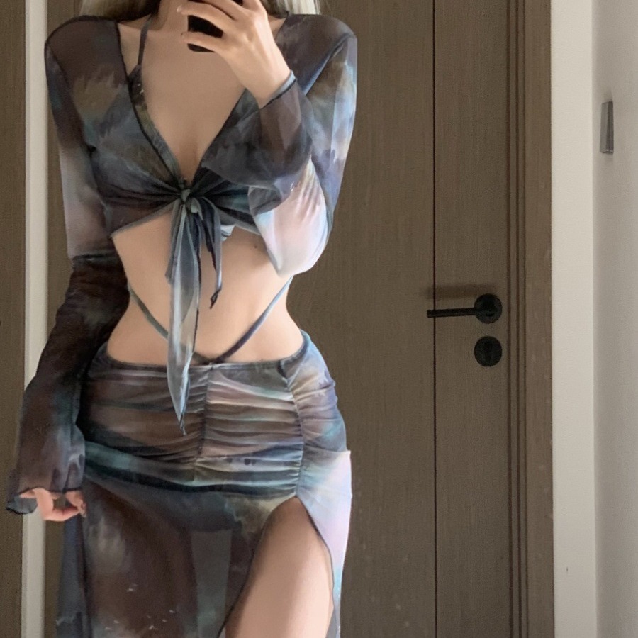 Fashionable Ladies Long Skirt Bikini Four Piece Set