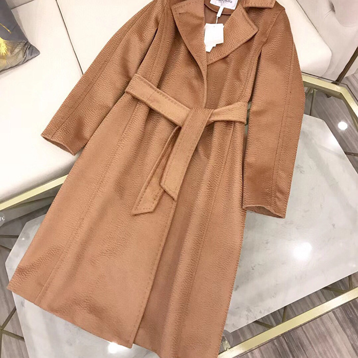 Long Woolen Coat With Corrugated Water Lace Horn Buckle