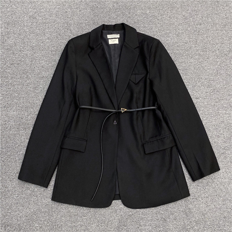Non Buttoned Lapel Waistband Wool Suit Jacket