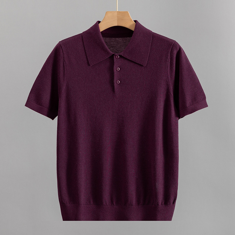 Silk Cashmere Polo Lapel Pullover Short Sleeved Knitted Sweater