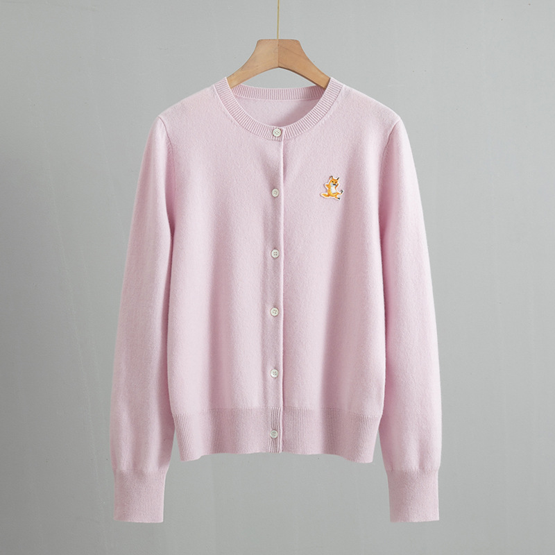 Wool Round Neck Animal Embroidery Casual Knitted Cardigan
