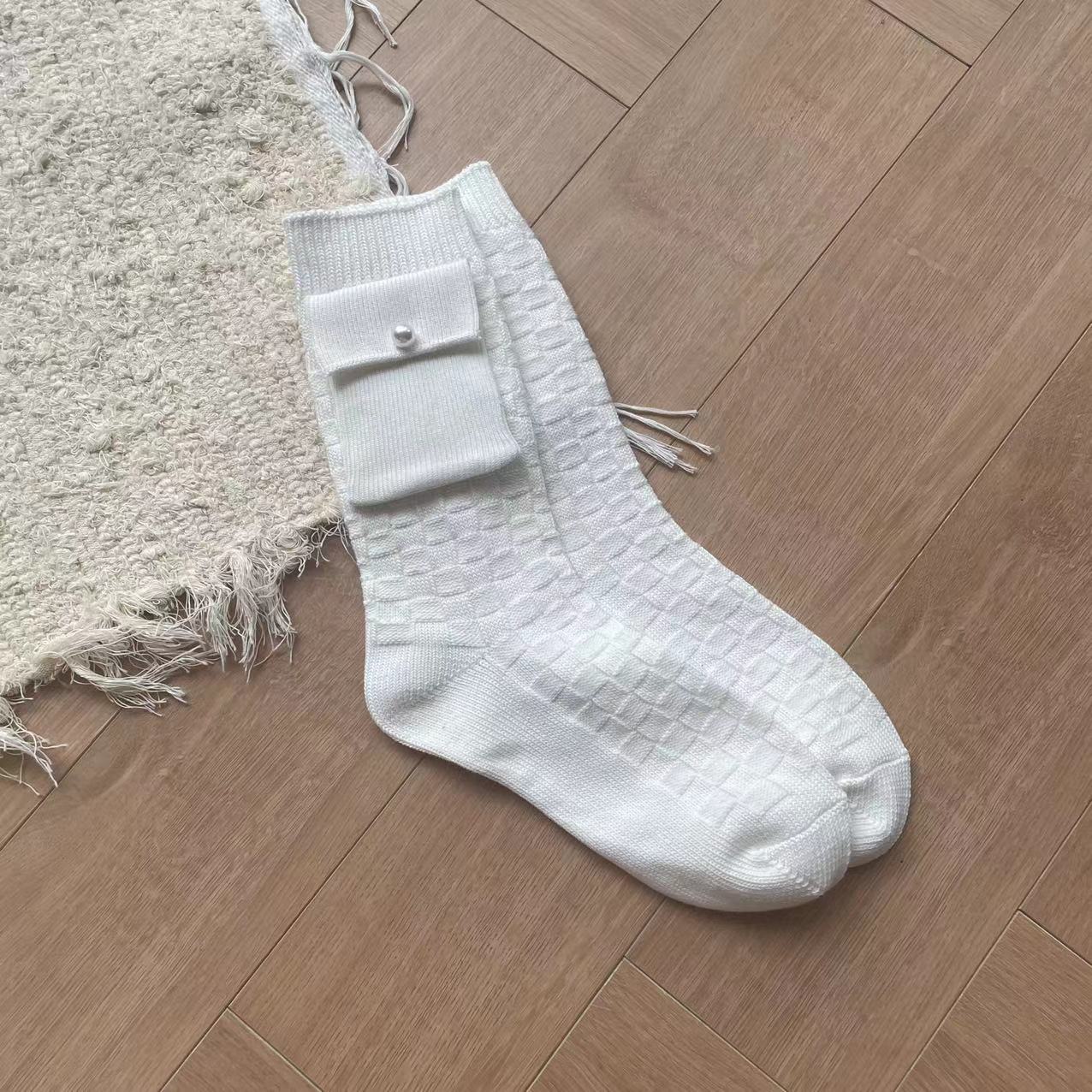 Pearl Decorated Checkerboard Mid-Calf Socks